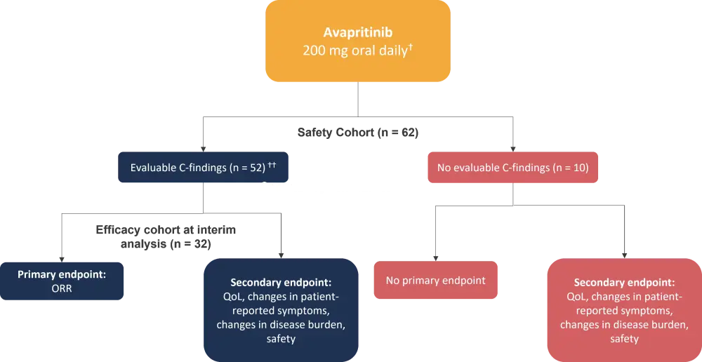 †† Two patients were treated with 100 mg avapritinib oral daily.