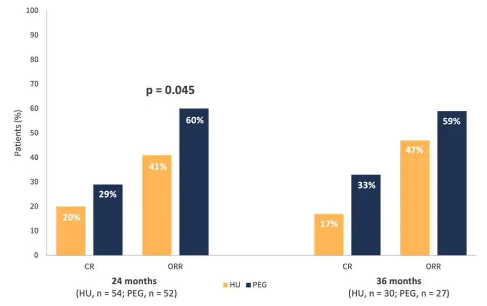 CR, complete response; HU, hydroxyurea; ORR, overall response rate; PEG, pegylated interferon-alfa-2a.