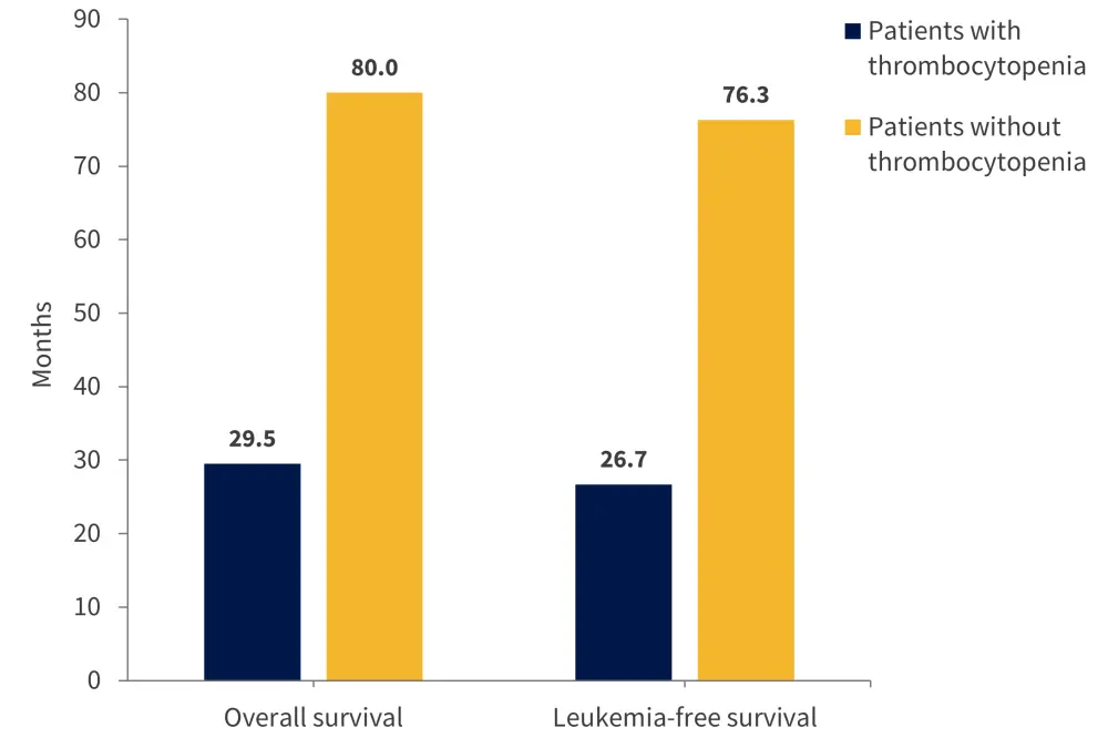 Figure 1. Median overall survival and leukemia-free survival in patients with and without thrombocytopenia*