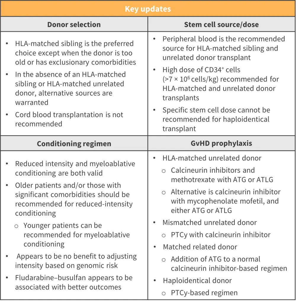 Figure 3. Recommendations for donor selection, stem cell source/dose, and conditioning regimen*