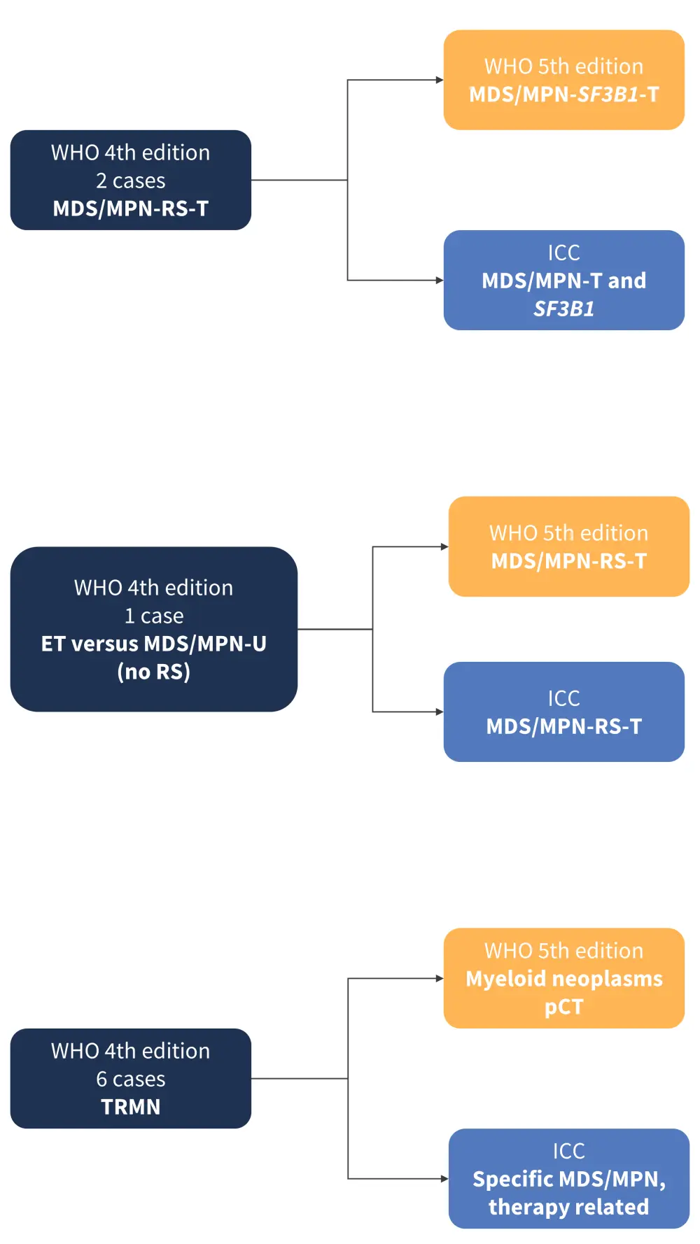 Recently, Benton et al.1 published a report in Journal of Clinical Pathology reviewing 64 patients diagnosed with MPN/MDS using both schemes and assessing diagnostic inconsistencies to highlight significant differences between the models. Here, we highlight the key findings in the article.