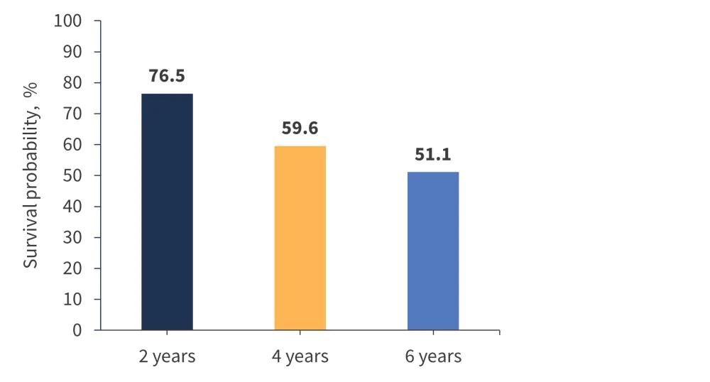 Figure 1. Survival probabilities in the pooled momelotinib-treated population from SIMLIFY-1, SIMPLIFY 2, and MOMENTUM (N = 725)*
