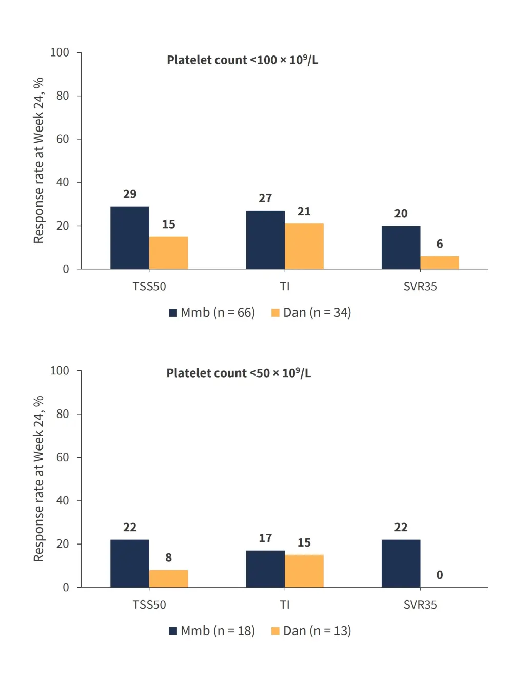 Dan, danazol; Mmb, momelotinib; SVR35, ≥35% reduction is spleen volume from baseline; TI, transfusion independency; TSS50, ≥50% reduction in total symptom score from baseline.