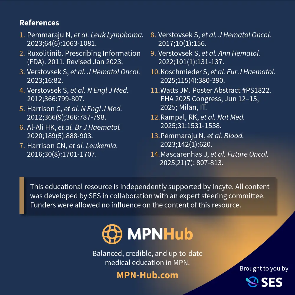 This educational resource is independently supported by Incyte. All content was developed by SES in collaboration with an expert steering committee. Funders were allowed no influence on the content of this resource.