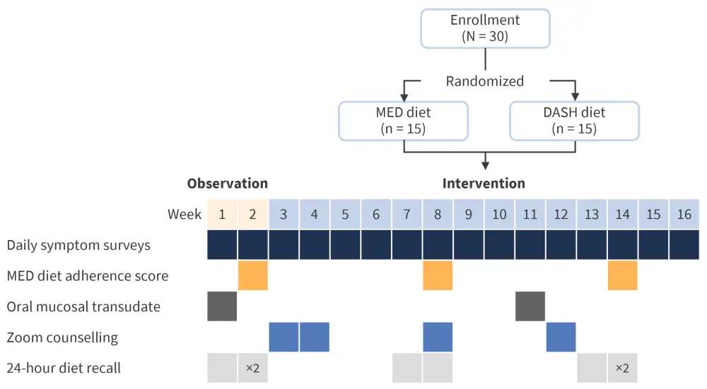ASA24, Automated Self-Administered 24-hour Dietary Assessment Tool; CBC, complete blood count; CMP, comprehensive metabolic panel; hsCRP, high sensitivity C-reactive protein test; MED, Mediterranean; USDA, United States Department of Agriculture.