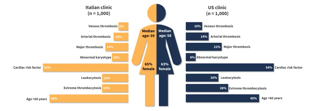 Gangat et al.1 and Loscocco et al.2 conducted retrospective studies documenting the patient characteristics, management strategies and clinical outcomes of 1,000 patients with ET at single centers in the United States (US) and Italy, respectively. The MPN Hub is pleased to summarize the results of these studies, with comparisons made between the two geographical centers.