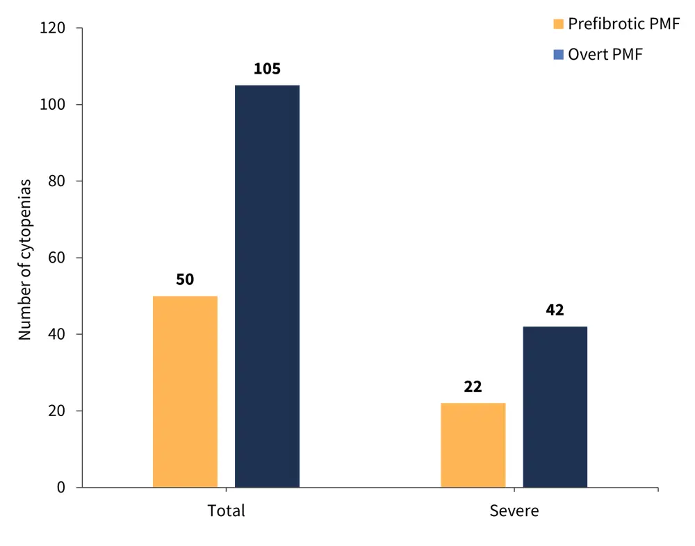 Figure 2. Number of cytopenias recorded in patients with prefibrotic and overt PMF*