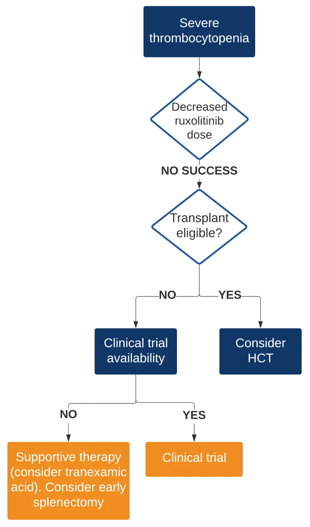 Figure 3. Management algorithm for the ruxolitinib failure with severe thrombocytopenia2