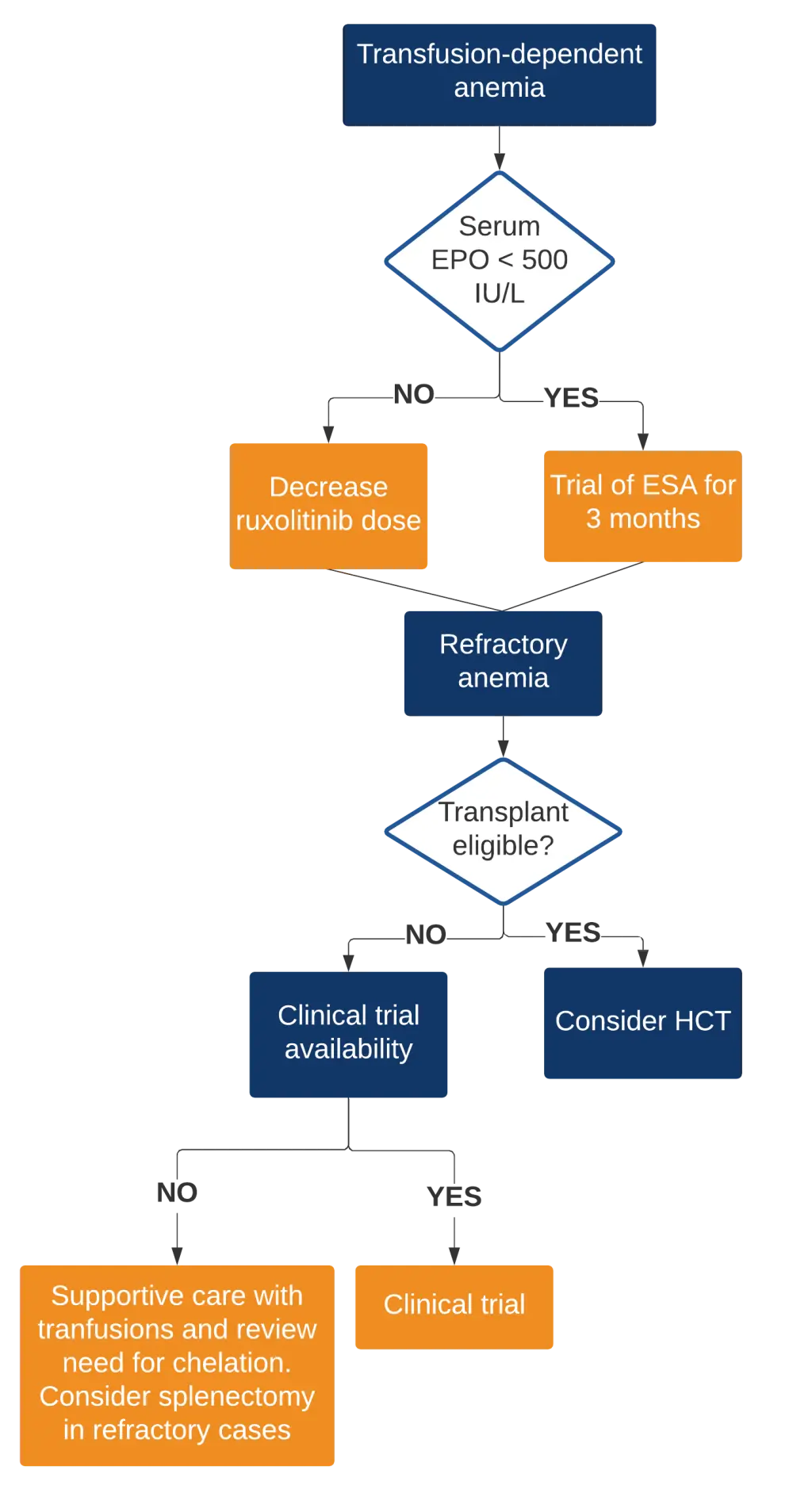 Figure 2. Management algorithm for ruxolitinib failure with a new onset transfusion-dependent anemia2