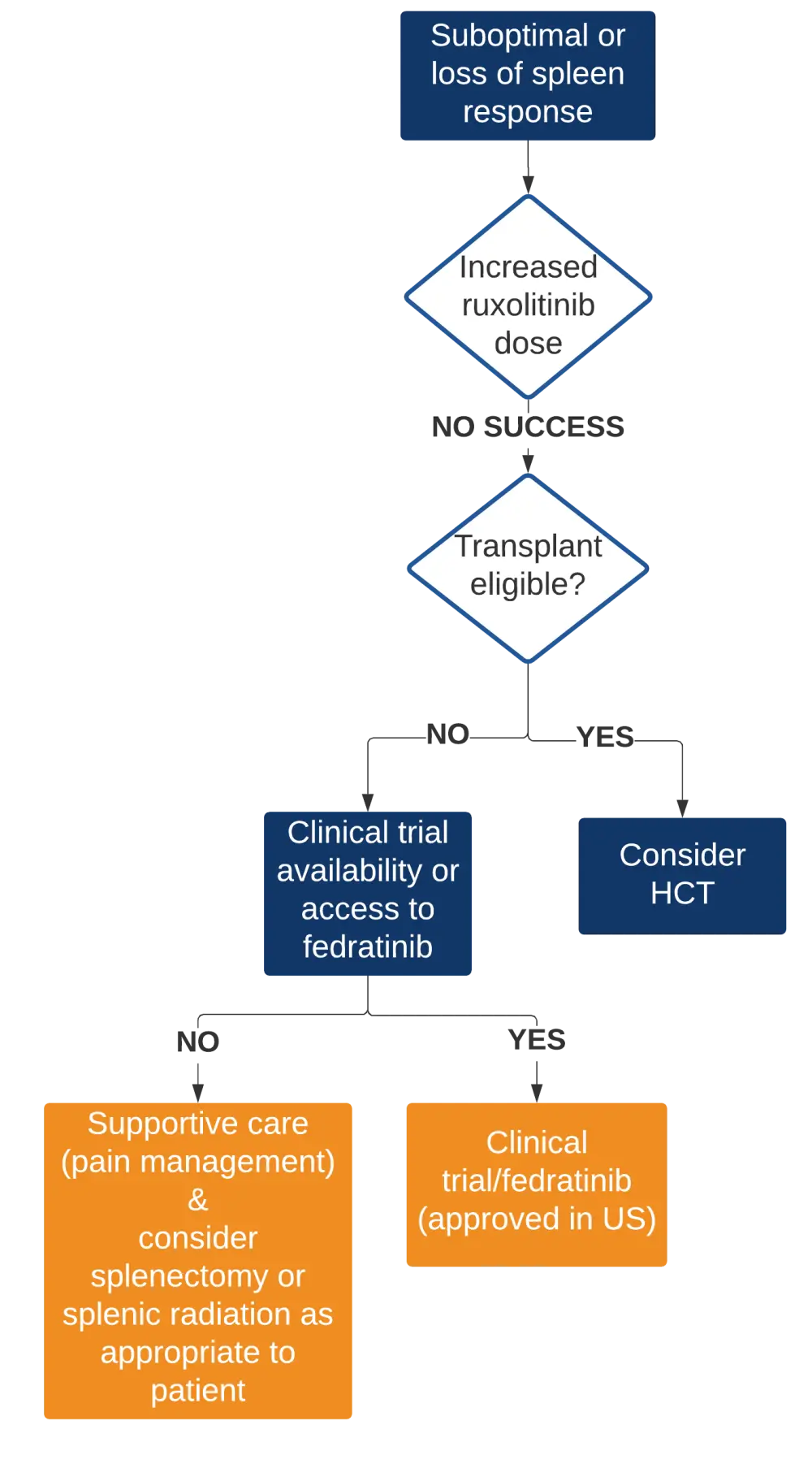 Figure 1. Management algorithm for ruxolitinib failure with suboptimal or loss of spleen response2