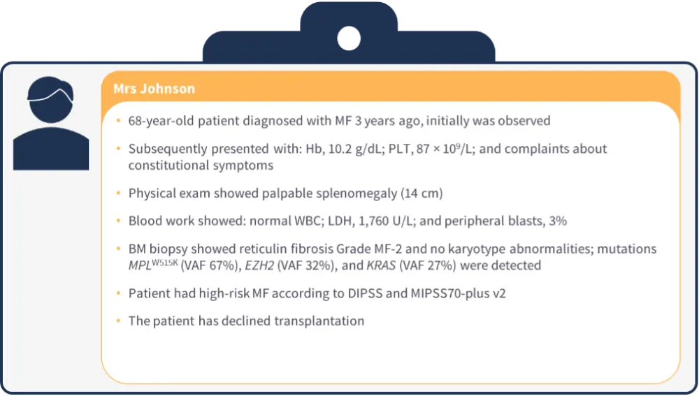 Guglielmelli then presented three patient cases and discusses the clinical evidence influencing treatment decisions specific to each case (Figures 1–3).